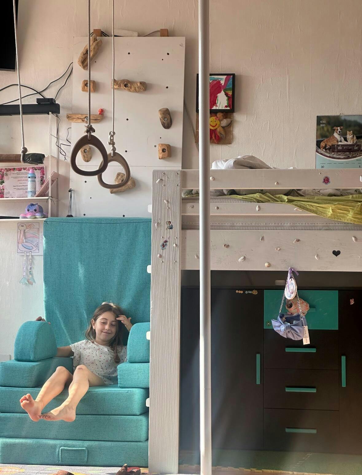 Децата могат да прекарат часове без да слизат от него. Строят крепости, пързалят се, скачат, понякога просто си лежат с книжка. Не се притеснявам, защото е мек и безопасен. Даже и аз понякога се изтягам на него. 😊