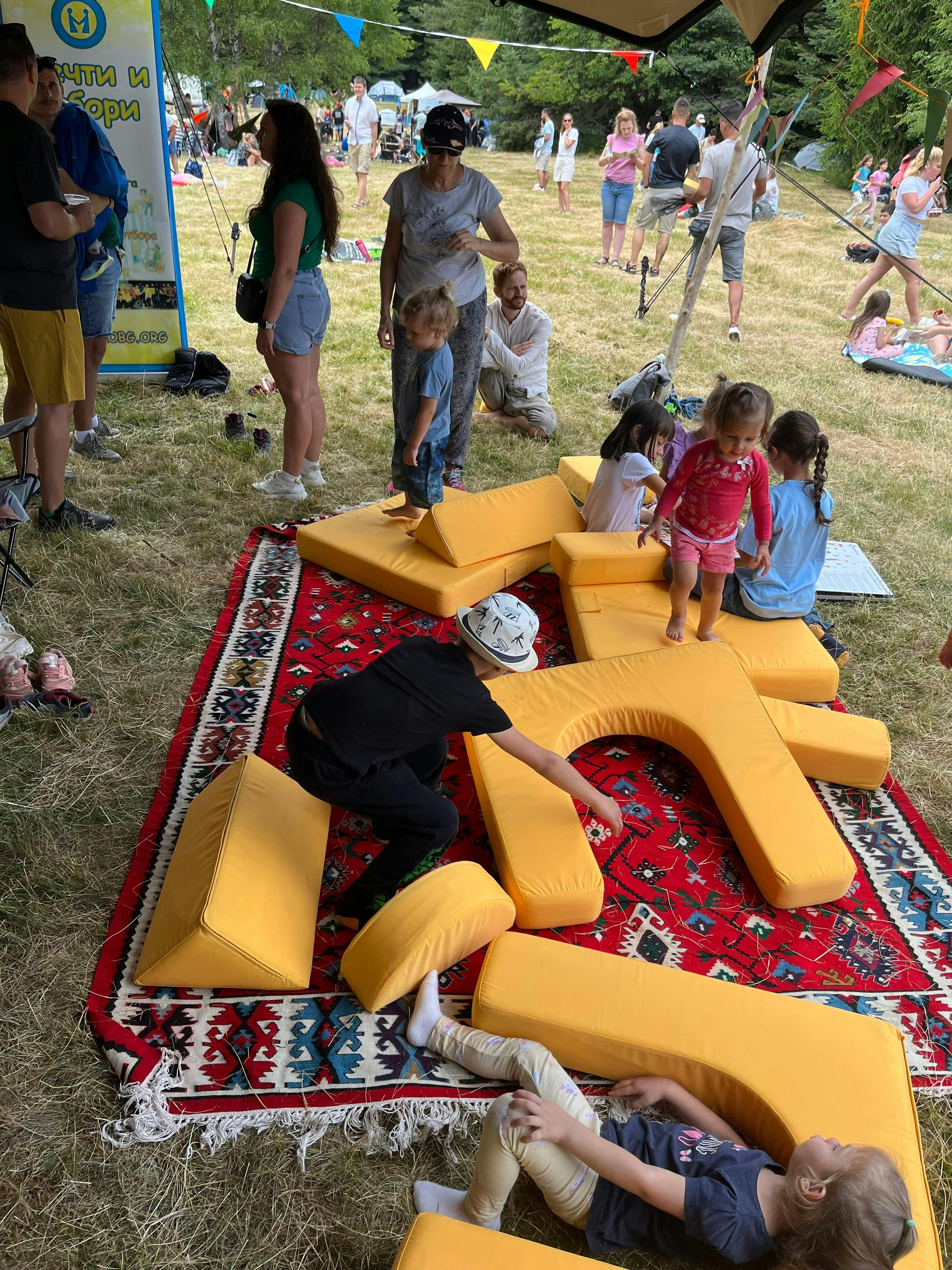 По време на фестивала този модулен диван успяваше да задържи вниманието на деца от 1 до 9-10 години много по-дълго от всяка друга работилница. Дори не се налагаше през цялото време да има възрастен, който да обяснява какво и как да правят. Интуитивно децата откриваха десетки приложения.